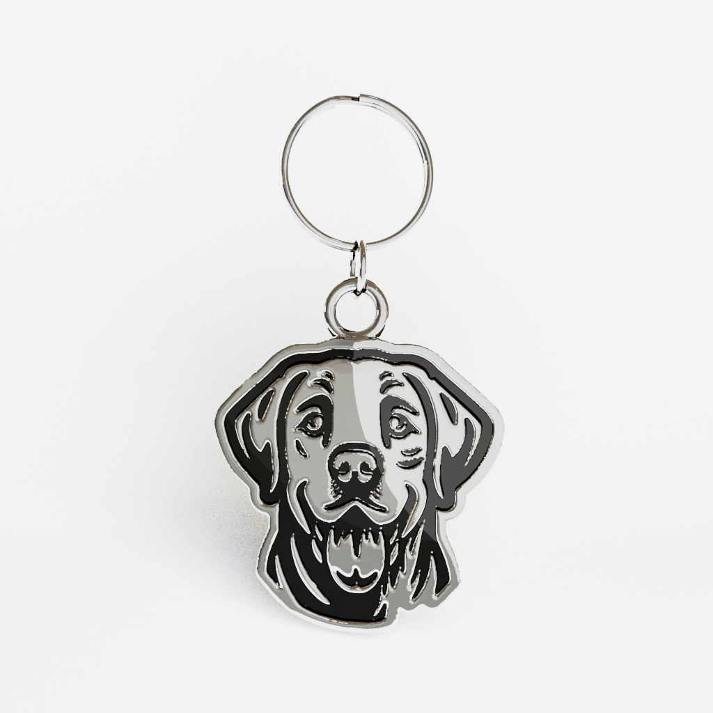 Medaglietta a forma di Labrador in zama con finitura palladio free (nichel free), leggera ma resistente e realizzata interamente in Italia. Da agganciare a collari, pettorine o zaini, è il ciondolo ideale per chi vuole portare sempre con sé il sorriso e la dolcezza instancabile del proprio Labrador.